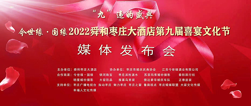 9月12日下午,由舜和棗莊大酒店主辦,棗莊市婚慶慶典協(xié)會(huì)、江蘇今世緣酒業(yè)有限公司協(xié)辦的”“九”違的盛典——今世緣·國(guó)緣 2022舜和棗莊大酒店第九屆喜宴文化節(jié)媒體發(fā)布會(huì)在舜和棗莊大酒店隆重舉行。